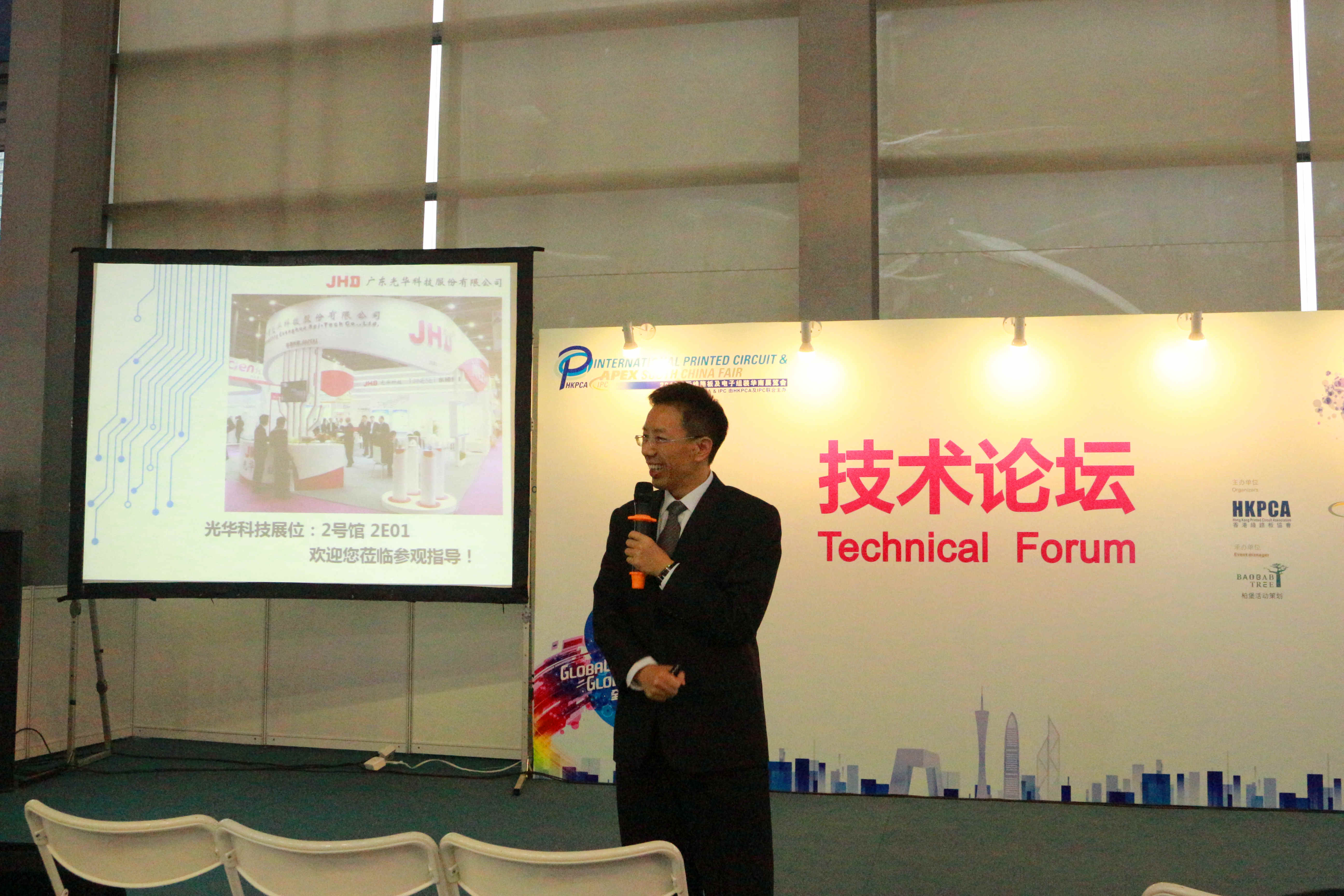 2015國際線路板及電子組裝華南展覽會(2015 HKPCA & IPC Show)于12月2日在深圳會展中心隆重開幕。光華科技攜“孔導通化整體解決方案”亮相展會現場。