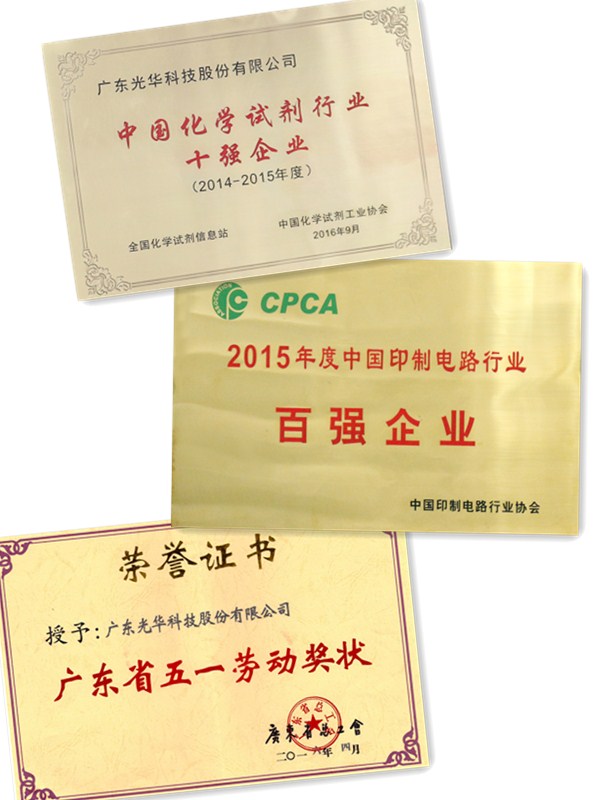 30多年來,光華科技一直專注于“高性能電子化學(xué)品”和“高質(zhì)量化學(xué)試劑”為主導(dǎo)的專用化學(xué)品產(chǎn)業(yè)領(lǐng)域,在PCB行業(yè)及化學(xué)試劑行業(yè)獲得了社會的普遍認可: