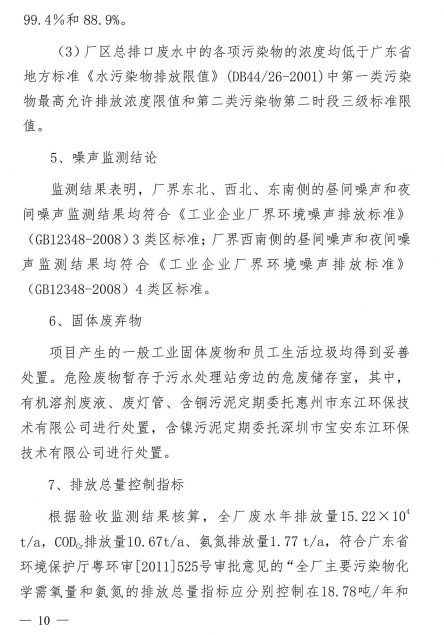 附件二:年產1萬噸電子化學品擴建技術改造建設項目竣工保護驗收意見