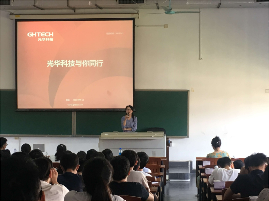 隨后,在廣東工業大學的輕工化工學院新生入學典禮上,光華科技優秀管培生代表與新同學進行了“光華科技與你同行”的分享,展現了光華科技的企業風采,介紹了光華易購平臺為新同學未來學習中帶來的幫助。