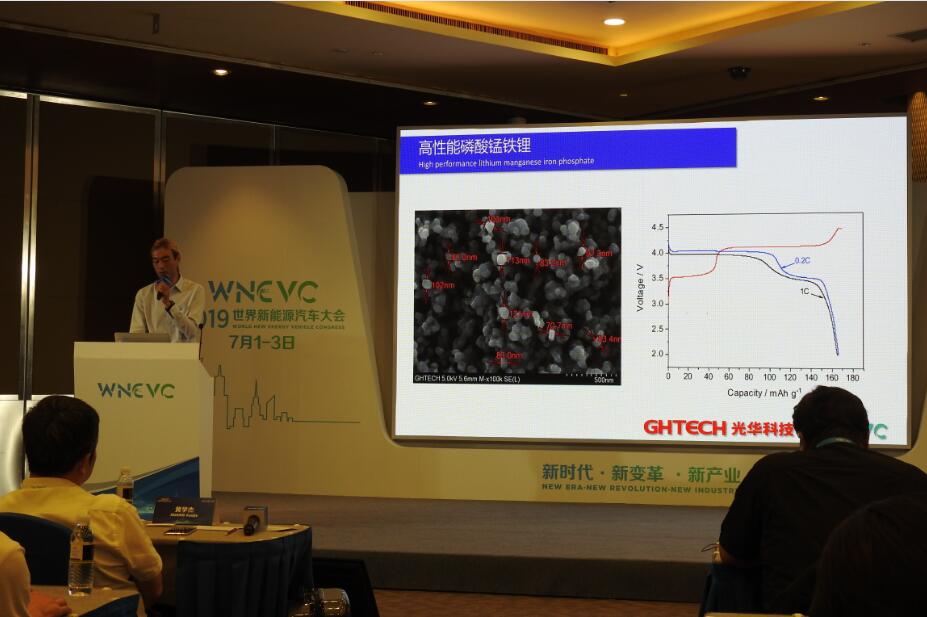 在今天下午舉行的2019世界新能源汽車大會“動力電池技術(shù)創(chuàng)新與安全”主題峰會上,光華科技向與會各方進行了“以創(chuàng)新思維重塑動力電池價值鏈”的主題報告,首次對外發(fā)布即將上市的新產(chǎn)品——磷酸錳鐵鋰!