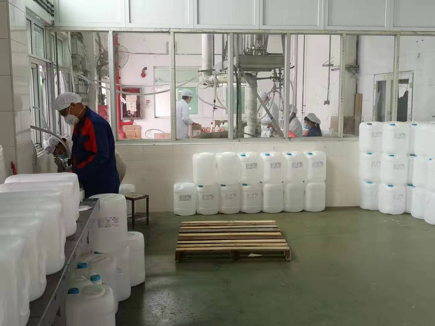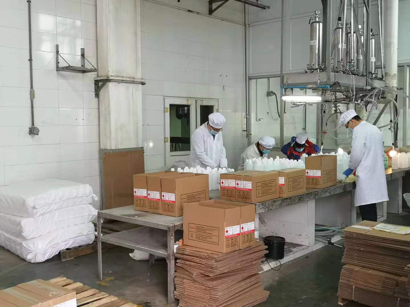 大年初一,公司管理層緊急召開專題會議成立了疫情應急工作小組。初二,進行全面原材料及成品庫存盤點,并開始持續捐贈防疫化學品,支援抗疫!初七,經過前期充分準備,啟動防疫化學品應急生產,主要生產:75%酒精、過氧化氫、過氧乙酸、次氯酸鈉等。截止目前,已有二百多名員工加班加點,全力投入工廠各項工作!