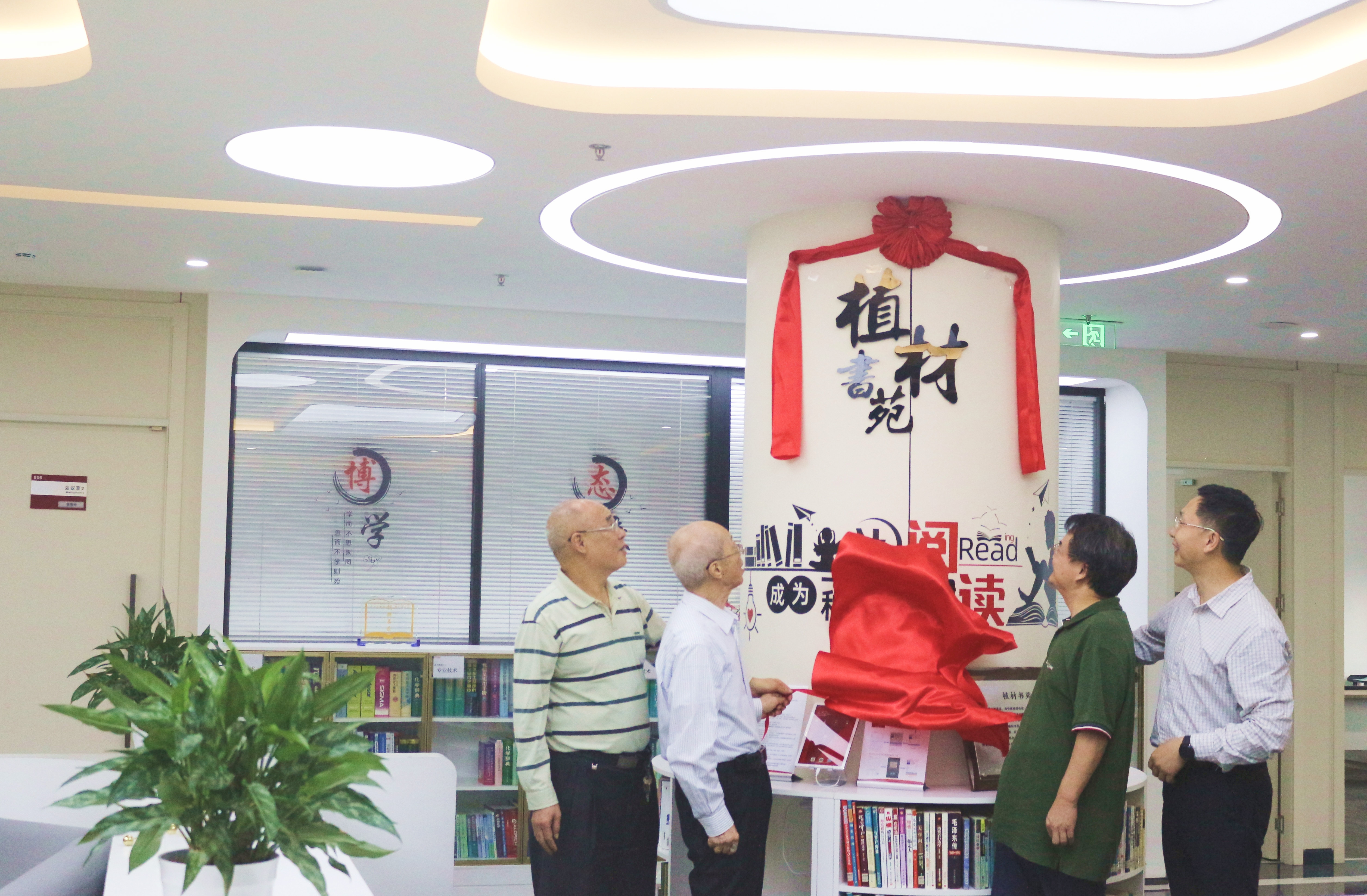 三尺講臺植春花,四位教授謀佳,教授們共同為書苑揭牌。