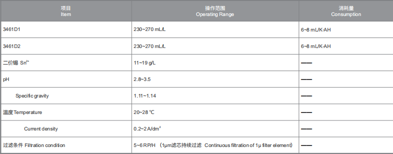 3461D1: Commonly known as make-up. It is used for complexing tin ion to control deposition rate of electroplating and make the plating crystal fine and tight;